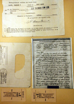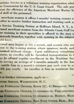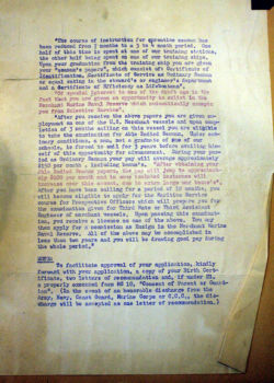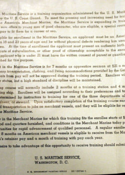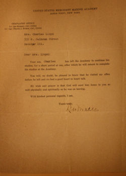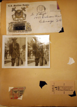 In the below album, particularly touching are two items: a letter from the Chaplain at Kings Point to Charles’ mother and a photograph of Charles in street clothes holding his suitcase – embarking on a new life and undoubtedly his first time in New York City.