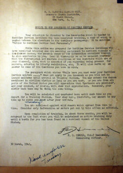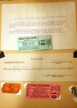 In the below album, particularly touching are two items: a letter from the Chaplain at Kings Point to Charles’ mother and a photograph of Charles in street clothes holding his suitcase – embarking on a new life and undoubtedly his first time in New York City.