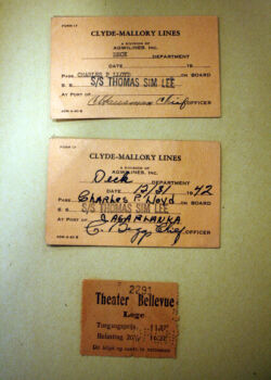 Charles Payne Lloyd enrolled in the U.S. Maritime Commission Cadet Corps in August 1942. As a Deck Cadet he sailed the world aboard the SS Thomas Sim Lee from October 1942 to June 1943 ranging from Casablanca to Western Australia. After this date, the next time Charles shows up in the public record is as a 3rd Mate aboard the Isthmian Lines managed SS Poland Victory having signed on March 9, 1944. The last ship he sailed on was the Isthmian Lines managed SS Thomas Cresap , after having signed on as 2nd Mate on December 15, 1944.
