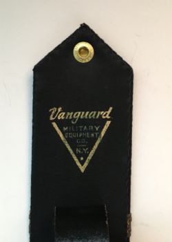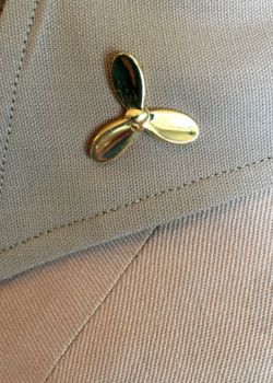 The configuration of cuff devices is topsy-turvy; instead of the two props following the configuration of the collar devices and shoulder boards (see below), they are opposite. Perhaps they were mistaken for stars when the regulations were drawn up, or their configuration is a wry classist slight as the props of a U.S. Navy enlisted machinist’s mate insignia have the two props pointing up. This gaff was remedied by the formal publication of uniform regulations in 1962.