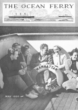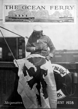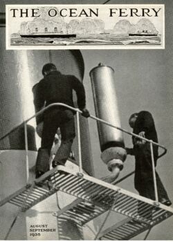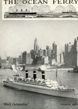 The American Merchant Marine Museum has stacks of Ocean Ferry magazines – some in quadruplicate or more. This publication was the internal communication organ of International Mercantile Marine Company for all shipping lines under its corporate umbrella. It was issued monthly from 1921 through 1938, often with a combined number in the summer months. The magazine’s interiors have photographs of ships and employees as well as promotional copy mixed with items of interest to IMM personnel: retirements, awards, ship’s cat antics, and owner’s pronouncements. By the late 1930s, the steamship lines most represented in the text are Panama Pacific Line and United States Lines; it was eventually supplanted by Afloat and Ashore in 1939 – when the two lines merged under the flag of USL.