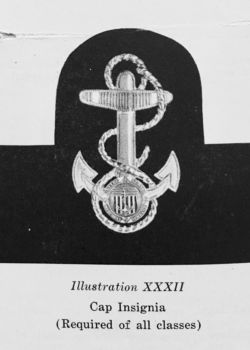 Preceding Richard R. McNulty’s assumption of the post of Academy superintendent by two months, the Cadet Corps issued its first post-war book of regulations, United States Merchant Marine Cadet Corps Regulations and Instructions on February 1, 1946. Part IV “Uniform Regulation for the United States Merchant Marine Cadet Corps” defined the style of a new cap device for the Cadet Corps: