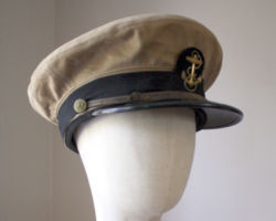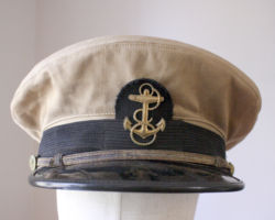 Interestingly enough, the Kings Point Ships Store throughout the 1940s and 1970s removed all manufacturer’s labels from the caps and substituted their own, making tracking down cap suppliers problematic – luckily some left clues on the inside of sweatbands