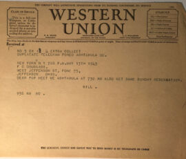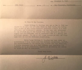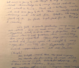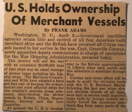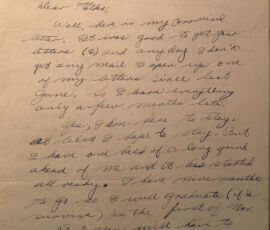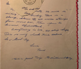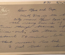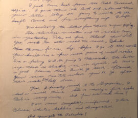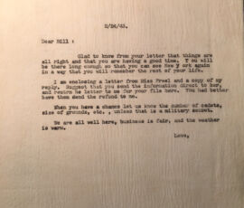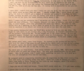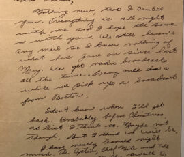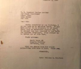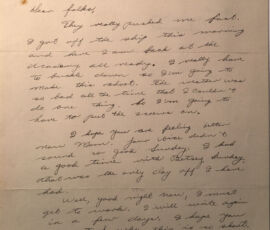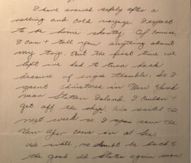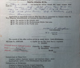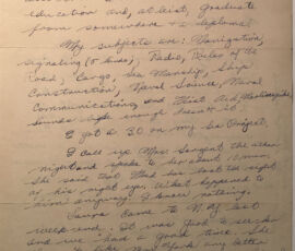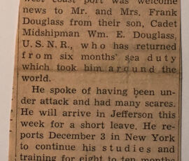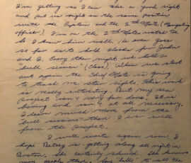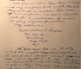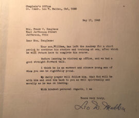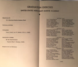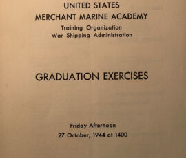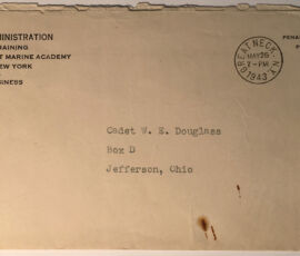 The day-to-day concerns of cadet-midshipmen during the war are lost to the fog of time; however, sometimes a cache of letters such as those between William Edwin Douglass and his parents surface. In his correspondence, there are mundane such as sending regards to family, stress-filled words on income tax questions on the money earned as a cadet during his sea time, and his worries about being able to endure the stress of training. These ninety pages follow William’s tenure at Kings Point from his first night in New York in August 1943 up until his graduation in October 1944. Bookending his correspondence are his recommendation letters, and a letter inquiring about him purchasing Midships – the Academy yearbook.