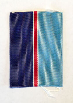 As for its size, the ribbon was 2” wide x 1/2” tall. It was designed to stand alone on the wearer’s chest. The dimensions matched those of ribbon bars given to United States Maritime Commission Cadets for honors; the width also corresponded to that of the highest civilian decoration of the time: U.S. Treasury Lifesaving Medal.