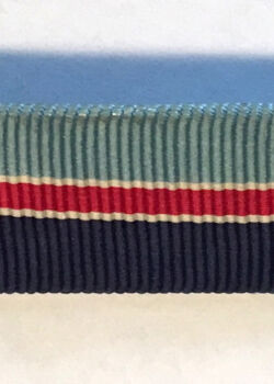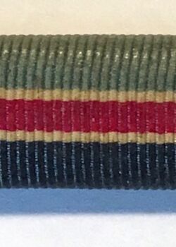 Its initial precedence fell immediately behind the war zone bars and before the Mariner’s Medal despite it being mentioned first in the law. WSA regulations in November 1943 called for a space of 1/4” between all ribbons, matching the practices of the U.S. Navy. As the war progressed, ribbon order changed, once again following the U.S. Navy example: personal commendation and combat-related ribbons first, with campaign ribbons following. The practicality of spacing ribbons was no longer desirable, and by mid-1944, they were placed on medal bars colloquially known as racks or sewn in continuous bands on blues. The Secretary of the Navy approved all ribbons to be 3/8” tall at this point, although the wider format was still found in the fleet with formal deprecation in April 1949 and prohibition by March 1951.