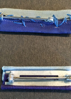 It is not uncommon to find both the Torpedoed Seamen’s Club insignia and the Merchant Marine Combat Bar in the wartime mementos of merchant seamen and among them, lengths of ribbon as well. It is of note that seamen did not receive ribbon bars, rather award cards that (barely) fit into their seaman’s identification wallets. They were free to purchase ribbons of which they qualified at their own expense – this tradition set in 1943 still holds at the United States Merchant Marine Academy today (July 2020).