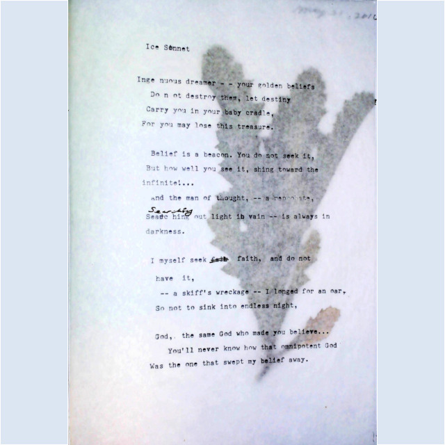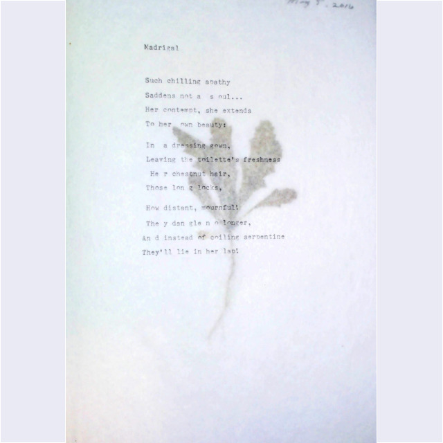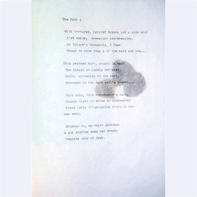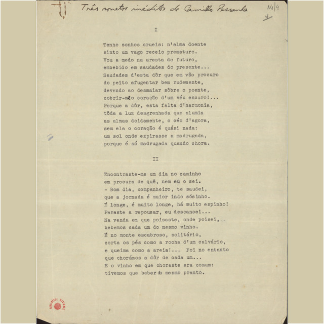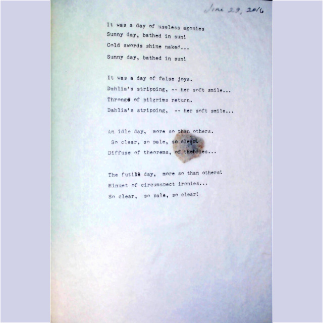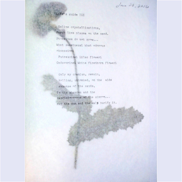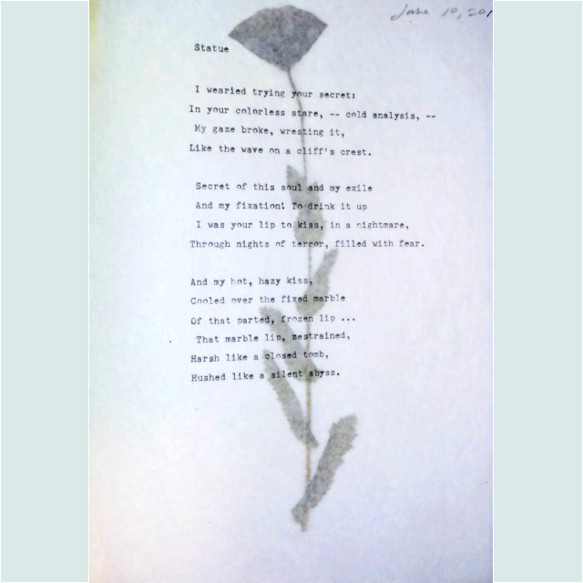 In 2016, I sat in front of an old typewriter and gathered together some of my translations of Camilo Pessanha’s poetry and paired them in a notebook with pressed opium poppies. The end product is a small memento of the time I spent perusing the corpus of his work at the Biblioteca Nacional de Lisboa in the late 1990s while on a grant from the Fundação Luso-Americana para o Desenvolvimento, and later the Instituto Camões and the Fundação Oriente. At the time, I found mirrored resonance in my life’s story within his words, and thus flowered my interest in him and his multifaceted prose and poetry.