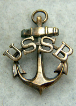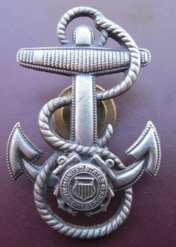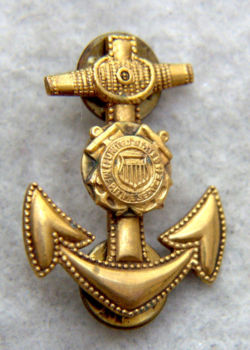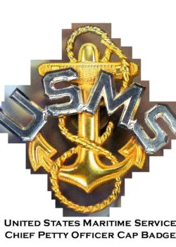 Russell Uniform Company had a cache of badges they created as patterns for the United States Maritime Service, but they were never is sued. These badges were simply too large to be worn on the collar; what the USMS did instead was to wear USN warrant officer badges. When Russell Uniform Company closed shop (formerly of 1600 Broadway & 192 Lexington Ave., New York City and the original uniform shop for NY State Troopers), Alan purchased their stock; thus these badges fall in the gray area of Official and Unofficial issues.