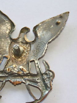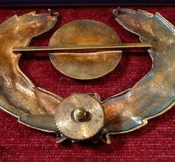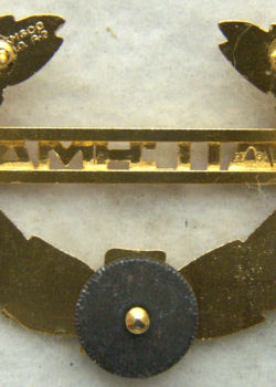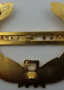 Knowing what International Insignia had on hand enabled Mr. Beckman to order rare items from them to sell to the militaria collecting community. He often jobbed out lots of one hundred pieces at a time and sold them at a trickle careful not to saturate the market. Early on, he placed his orders with International Insignia using what he surmised were original materials: a base metal plated in silver or gold; however, when precious metal prices made their use cost-prohibitive, he began placing orders for pieces in bronze, brass, and gunmetal. The later pieces of insignia, Mr. Beckman described as the rarest of rare items. Using International Insignia as a manufacturer gave him the sort of quality control over high-demand items he did not have in his own workshop. The light-chocolate bronze N.S. Meyer wings as produced by Internation Insignia were “works of art” and truly well-crafted and as the manufacturer claimed – they were complete down to the 45-degree angle catches.