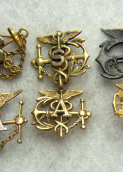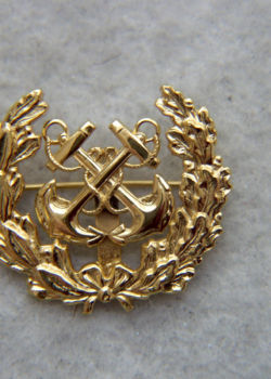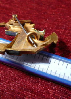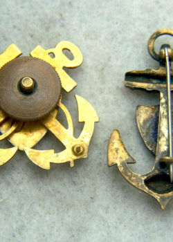 Mr. Beckman encouraged me to seek out insignia at estate sales. He told me trips to Florida netted him a trove of Pennsylvania Nautical School cap badges he was about to sell (N.B. P.N.S. never used stamped metal cap badges – a belt buckle, yes). I followed his advice and started to look around and was confused about what I saw and what he offered. At one point, I asked Mr. Beckman about the incongruity I noticed between the insignia I found in estate sales versus his offerings – all the old salts were selling sterling or gold. He slipped up told me the reason why the insignia he offered were in strategic materials – and not in silver plate – was due to collectors not wanting silver items. In a later sale, I mentioned to him I had done a scratch-test on one of his items; he told me gold substitute (e.g., Rust-oleum) is easier to procure than real gold. He then did a quick followup, writing, “Good eye.” He refunded my money, and told me the cap badge was mine for free.