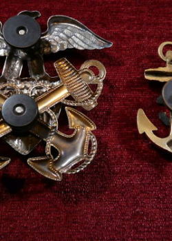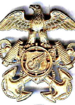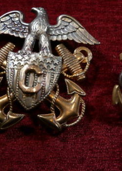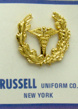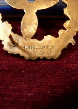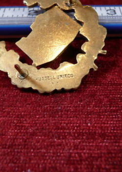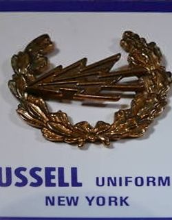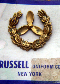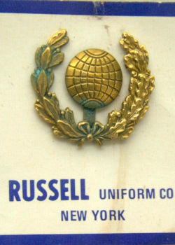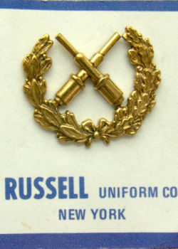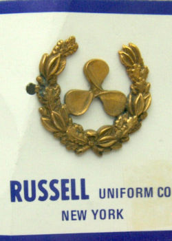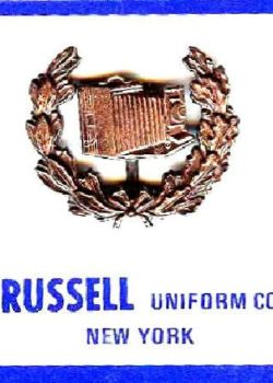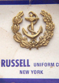 There was no going-out-of-business sale, and the unpublished regulations were made up. The United States Maritime Service used U.S. Navy warrant officer devices on collars and garrison hats; the only wreathed insignia were found on cuffs devices and shoulder boards. Russell Uniform Company did exist, it was a seller of police insignia and once the official uniform providers to the New York Police Department and New York State Police. Particularly problematic regarding much of the insignia is its corrosion – wartime insignia was not made of brass; especially when these items were purported to have come out: 1944-1945.