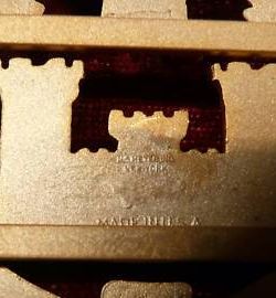 Reproduction: An item produced by a commercial firm for the purpose of satisfying the needs of collectors. These are sometimes referred to as “fakes.” These are only fakes if they purport to be official, vintage issues. And like reissues, they will have die and finish variations; such as lack of hallmarks or stoning of enamels. They fill gaps in a collection.