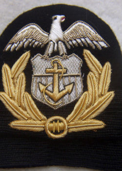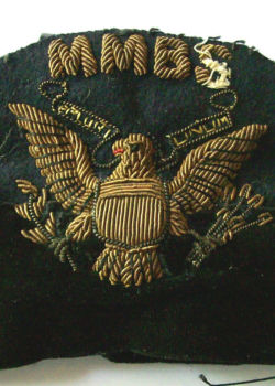 This is a fun badge. The eagle is actually a MSTS eagle with a USCG shield and USN anchors. US C&GS hat badges from the time of the Second World War are exclusively woven. Only postwar did metal hat badges come to be manufactured; with those matching NOAA examples from the present day.