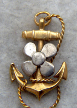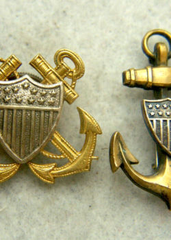 The applied anchor is a dead giveaway. No USMS CPO devices were ever manufactured that have said application. Alan offered the same device with silver applied anchors. In regard to the anchors themselves, these are actually old N.S. Meyer appurtenances struck in the late 1930s for use with U.S. Maritime Commission Cadet Corps Scholastic Award Ribbon.