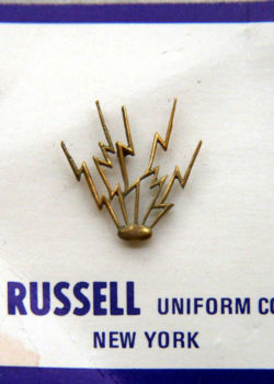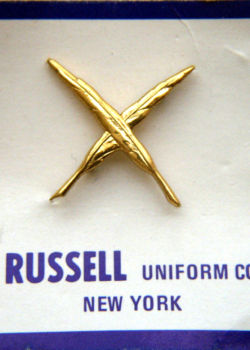 In late November 2018, I was approached and asked if I knew anything about insignia marked as coming from Russell Uniform Company. I spoke with Alan C. Beckman about his offerings a decade prior and he told me he was invited to the company’s offices in New York to take their existing stock when they were going out of business. With this amazing piece of information, I had purchased (and later returned a piece of Russell Uniform Co. insignia) from Mr. Beckman. Upon closer inspection, I found the insignia was a spray-painted cast. He congratulated me for my good eye and later told me that he had the cardboard privately printed (Tektronix printer) and he based the insignia on “unpublished” warrant officer regulations – he later told me he did not have the regulations: