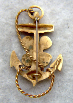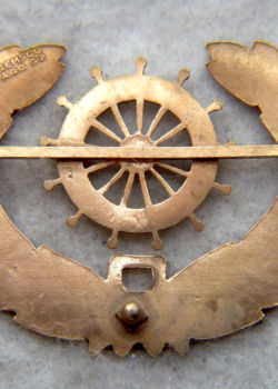 When I first posted this page, I received an anonymous comment with the images created below. Apparently, between August 2010 and February 2011, a number of merchant marine insignia flooded eBay. I dubb these “Rudy Basurto” Collection since they all looked very similar to items depicted in Rudy Basurto’s privately-printed book, Insignia of America’s Little Known Seafarers. To an item, each appeared at one time or another in usnusa eBay auctions. These images are important as they depict the reverses of many of the pieces of insignia, and they show detail otherwise absent from the scans above.