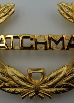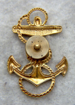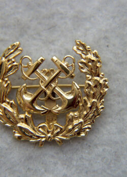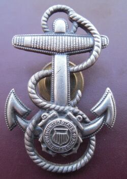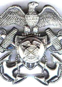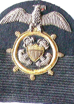 This badge is a mash-up of ideas. It was not until 1968 that the US Navy Uniform Board approved a Master and Senior Chief Petty Officer cap insignia – similar to their collar devices, with one or two silver stars superimposed on the anchor, inverted and centered on the stock. The US Coast Guard soon followed the US Navy’s lead in 1970, as did the regulations for US C&GS/NOAA. The US C&GS had a small core of Chief Petty Officers up until the 1950s, afterward they converted to unlicensed, un-uniformed Federal, civil-service employees. Proposed insignia tables were published in 1965 without examples being produced. With the transfer of the agency to the Environmental Science Services Administration, all non-commissioned officer positions were removed and finally ceased to be with the 1970 reorganization into the National Oceanic and Atmospheric Administration.
