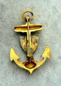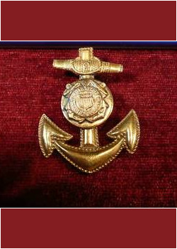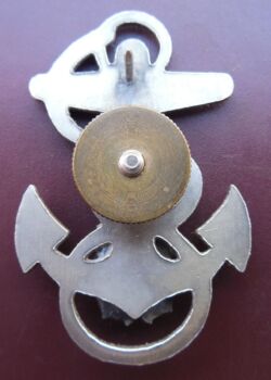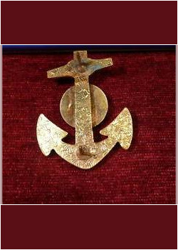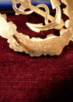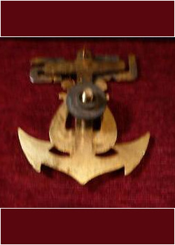 Students of naval insignia will note that on this particular hat badge is the fact that the star is not of the type used by any of the licensed manufacturers of US Military establishment insignia, and and the anchor itself is that of a US Navy ROTC/Annapolis midshipman. The only US CG&S true device is the triangle within the circle.