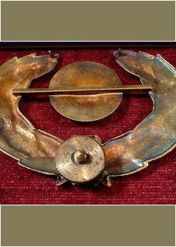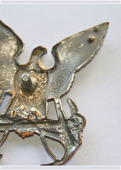 Knowing what International Insignia had on hand enabled Mr. Beckman to order rare items from them to sell to the militaria collecting community. He often jobbed out lots of one hundred pieces at a time and sold them at a trickle careful not to saturate the market. Early on, he placed his orders with International Insignia using what he surmised were original materials: a base metal plated in silver or gold; however, when precious metal prices made their use cost-prohibitive, he began placing orders for pieces in bronze, brass, and gunmetal. The later pieces of insignia, Mr. Beckman described as the rarest of rare items. Using International Insignia as a manufacturer gave him the sort of quality control over high-demand items he did not have in his own workshop. The light-chocolate bronze N.S. Meyer wings as produced by Internation Insignia were “works of art” and truly well-crafted and as the manufacturer claimed – they were complete down to the 45-degree angle catches.