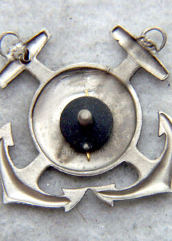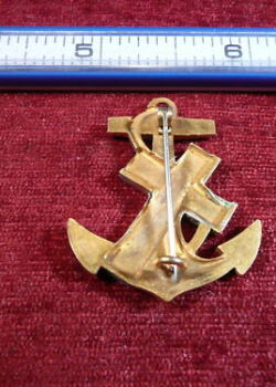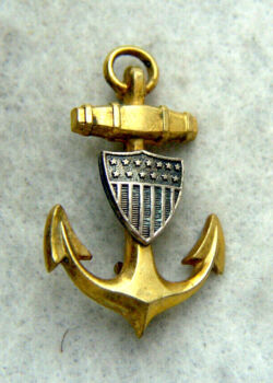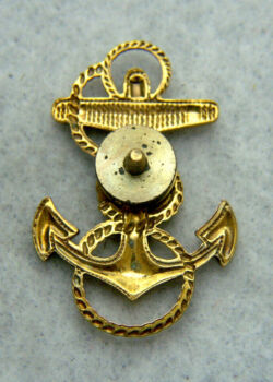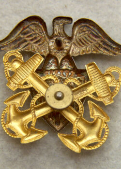 This is not quite a restrike. The die was designed, yet the badges never went into production. I have an actual, issued US Navy Commissioned Officer hat badge of the “pre-1940s” type in another post. Alan also had this badge as what he called a WSA cap badge. The WSA badge had bronze anchors and three stars on the shield; this would have been a fantasy issue since the WSA never issued such a badge; the three stars were a misunderstanding/attribution of MMP cap badges with the thought of what a USSB cap badge would have looked like.