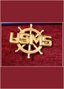 Russell Uniform Company had a cache of badges they created as patterns for the United States Maritime Service, but they were never is sued. These badges were simply too large to be worn on the collar; what the USMS did instead was to wear USN warrant officer badges. When Russell Uniform Company closed shop (formerly of 1600 Broadway & 192 Lexington Ave., New York City and the original uniform shop for NY State Troopers), Alan purchased their stock; thus these badges fall in the gray area of Official and Unofficial issues.