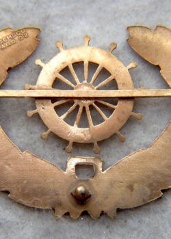 Alan C. Beckman claimed many of the cinderella designs that came out of his N.S. Meyer stock were trials or leavings from small batch jobs. He explained that often a client would approach N.S. Meyer and ask if they could produce something. N.S. Meyer would make trial strikes and either make a sale or not. In fact, in the insignia business, tools are considered assets and if they were kept around, they were taxed; most, if not all of these hubs for trials went the way of the scrapyard. Mr. Beckman never owned an N.S. Meyer die, despite what he intimated to me. In regard to the dies themselves, he speculated correctly on some – and others not so. Since Mr. Beckman was a United States Navy veteran, he had a particular fondness for offering submarine badges and maritime-related insignia badges. And, being a friend of Rudy Basurto, Mr. Basurto’s work informed Mr. Beckman, and Mr. Beckman offered Mr. Basurto examples of his work and Herbert Hillary “Sarge” Booker drafted line drawings for Mr. Basurto’s monographs lending legitimacy to the fakes; it was a self-feeding circle. The cinderella pieces were Mr. Beckman’s own imaginative creations. In propping up his legend, he wrote me when I asked where does one find all of his merchant marine insignia: