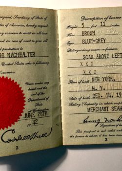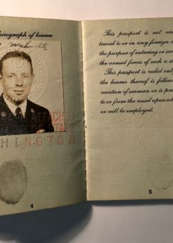 Below find Mr. Nachwalter’s Seaman’s Identification Wallet, an archive of his time at sea.