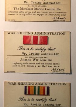 Mr. Irving Nachwalter volunteered early to join the ranks of cadet-midshipmen at the United States Merchant Marine Academy at Kings Point. He entered the program in the Summer of 1942 and in nine months, he was shuttling cargo to Suez. Cadet-midshipmen came from all walks of life and often had scant maritime experience – he was no exception: he came with none. At the time of his enrollment, he was living in Coney Island with his parents, a student at New York City College, and working full-time as a clerk for Alfred Dunhill, a tobacco import business. He was a first-generation immigrant, his father having fled the then Polish city of Lvov during a period of increased Russian pogroms in 1913 – six years prior to his birth. He was also one of the first Jewish graduates of the Academy.