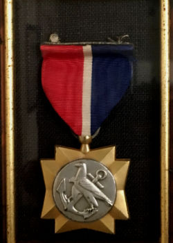 By the authority of the Congress of the United States, it is my honor to present to you, the mother of Cadet Midshipman Arthur Richard Chamberlin, Jr., the Mariner’s Medal in commemoration of the greatest service anyone can render cause or country.