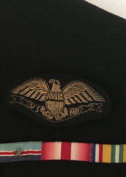 The Merchant Marine Combat Bar with the Silver Star is a potent reminder of survival and what all merchant seamen faced when they shipped out. David L. Upham joined the SS Meyer London in March 1944 in Norfolk, Virginia after having completed a month-long course of Basic Training. She was his first ship. On 24 March 1944, she sailed for the Mediterranean in a convoy which comprised of 102 merchantmen and 19 escort ships; in less than a month, the convey made deadly contact with the enemy on 11-12 April, and then again on the 24 April. The SS Meyer London was torpedoed and sunk in the second battle; Mr. Upham escaped.