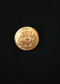 Along with David L. Upham’s uniforms were other pieces of insignia; these objects hint at uniform changes at Kings Point and the beginning of the tradition of passing along uniform parts to one’s successors. I am guessing at the latter since I strongly doubt any of these were actually worn on Mr. Upham’s uniforms – they do not match extant photographs of him at Kings Point, nor do they match insignia worn by other cadet-midshipmen during his tenure at Kings Point. Nevertheless, of interest is the old-style pin-on USNR badge; these were exclusively early Cadet Corps items and came in two varieties: clasp or straight pin. This type of USNR badge was eventually supplanted by the sewn-on badge. Sadly, the pin is missing. This may have been handed down to Mr. Upham. The boards do not match the boards on the whites; this would be due to the fact that there may have not been an immediate re-issue of boards when Mr. Upham first held the rank of cadet-midshipman lieutenant (junior grade) or his predecessor gave then to him (as was common at the time). There is a midshipman officer cuff shield; these devices were deleted in 1944 and replaced with the badges as seen on the sleeves of the dress uniform well before Mr. Upham’s return from Sea Year; this device may have been a totem of some sort. The USMS cuff devices were explored above. For Kings Pointers of the war years, the most commonly saved items from their uniforms were USNR badges, cuff devices, and collar insignia – Mr. Upham saved all with the exception of his collar devices.