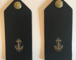 Above are insignia worn by cadets during their brief sojourn at Kings Point. The cap badge is of the USMCC-type; the anchor cuff device and anchor on shoulder boards are those of a deck cadet. The boards were often passed down from cadet to cadet; note the pre-1941 should board snap buttons.