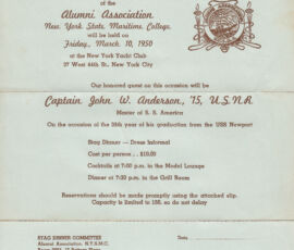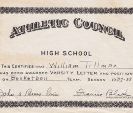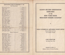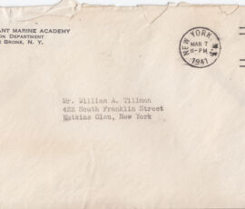 William A. Tilllam, Jr. was born in Watkins Glen in upstate New York. After graduation from high school, he enrolled in New York State Merchant Marine Academy at Fort Schuyler, The Bronx in 1940. The joined the engineering program, and almost immediately after graduation from For Schulyer, he was called up to serve with the United States Navy. After the war, he studied engineering at Syracuse University and had a career as an engineer with General Electric Co. for a quarter of a century.
